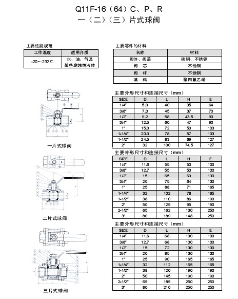 阀体材质: WCB、CF8、CF8M、CF3、CF3M