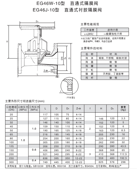 阀体材质: 铸铁、不锈钢、铸铁/衬胶